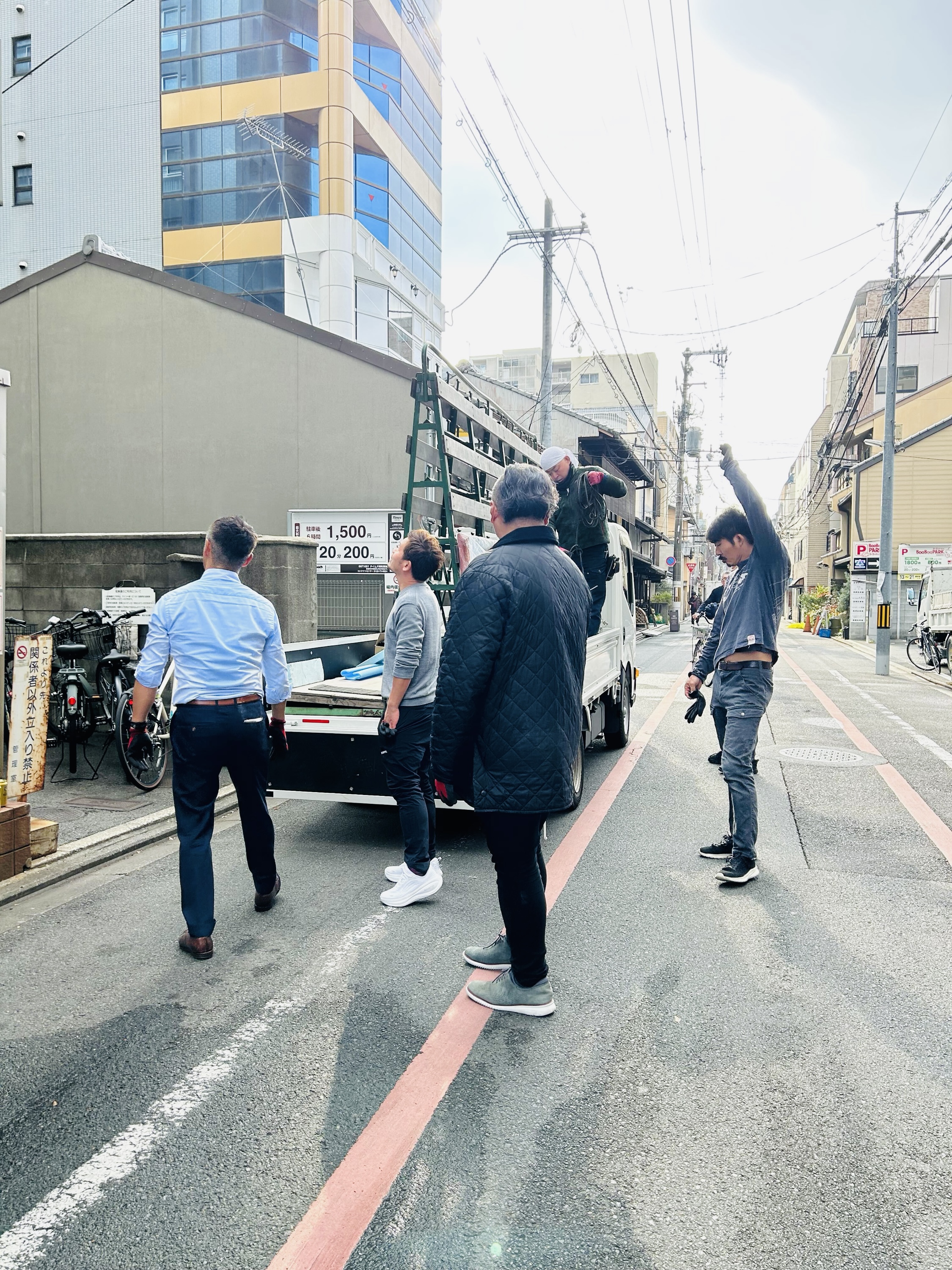 京都オフィスの工事の部材の荷上げがありました
